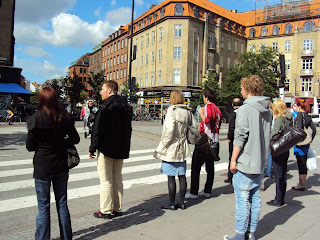 This is the funniest thing. Danes all stand at a crosswalk, even when there are no cars in sight, and wait for the light to turn green before they cross. I have never seen this before - we would always jaywalk in the states. It is sort of their respect for their laws, and non-desire to be different and stand out.